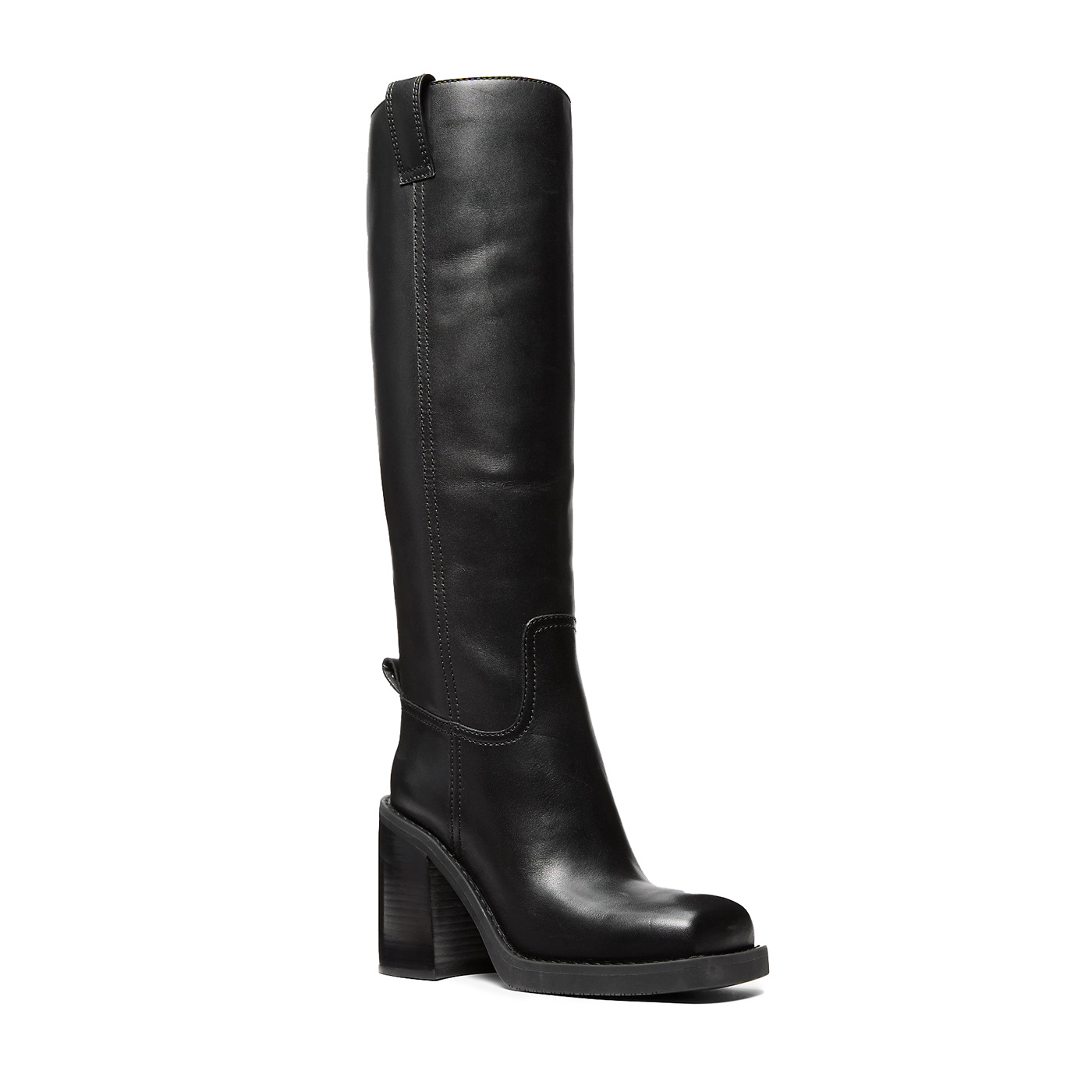 Designed with a chunky block heel and a sleek, rubber sole, riding-boot inspired shaft, the square-toed Houston boot is destined to be a favourite for seasons to come. Pull them on by the pull tabs to ground mini skirts or shorts. An iconic knee-high boot