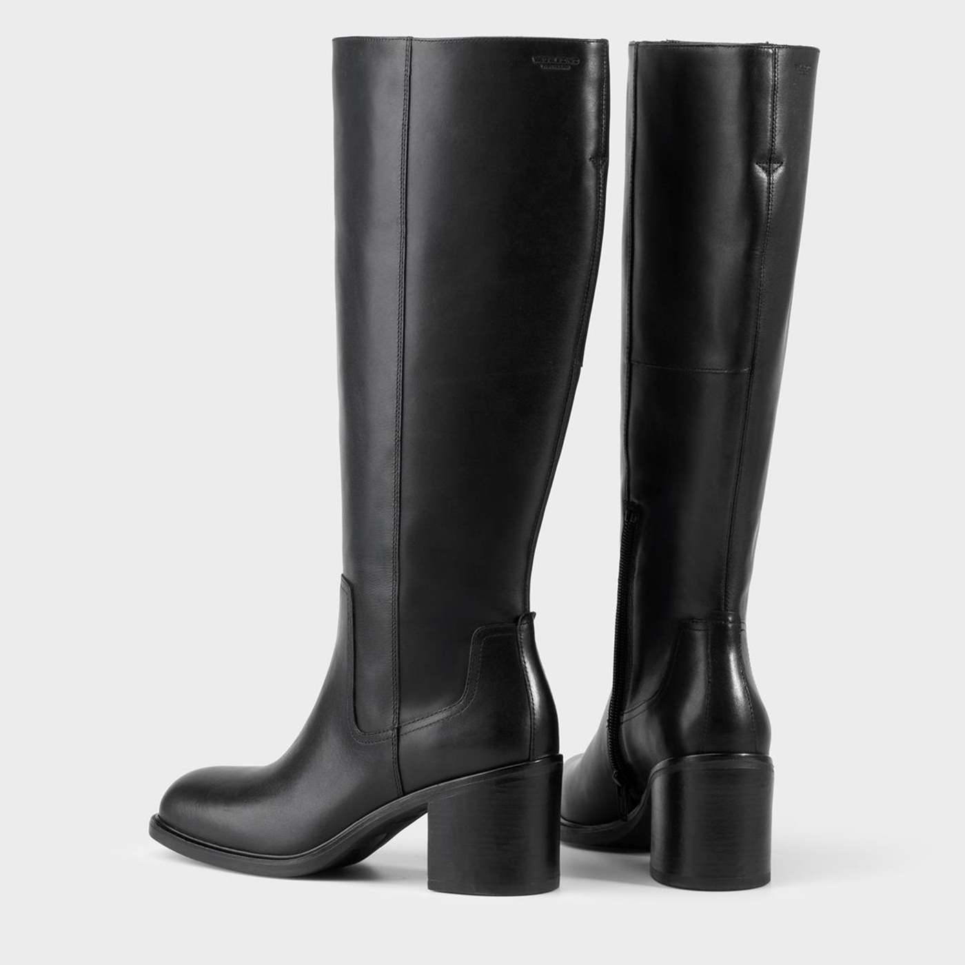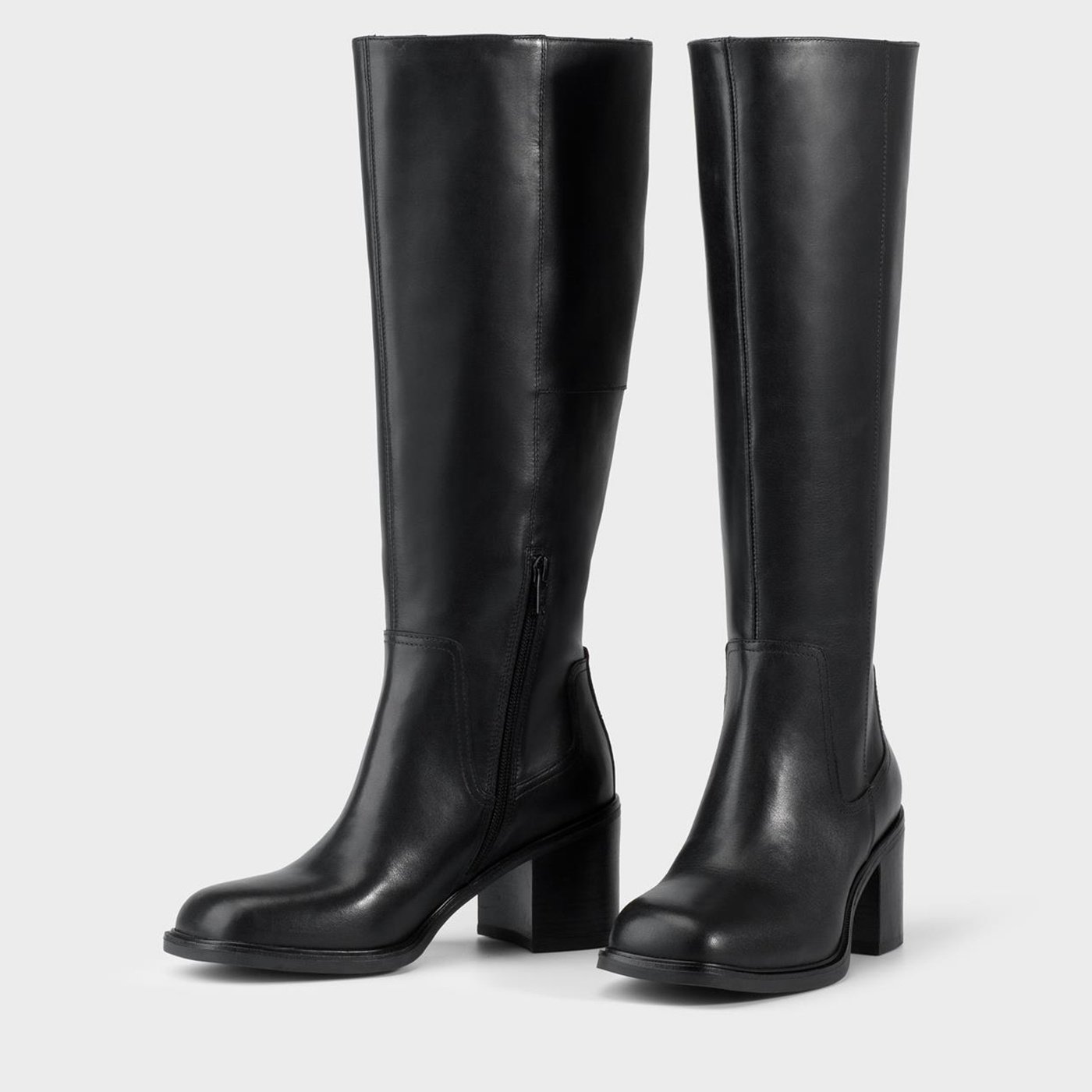 Meryl from Vagabond balances feminine elegance with casual edge. This tubular semi-slouch knee high boot is made from black full-grain smooth leather. Features: rounded toe shape, zipper entry, rubber sole and a 2.25 inch block heel. A staff pick.